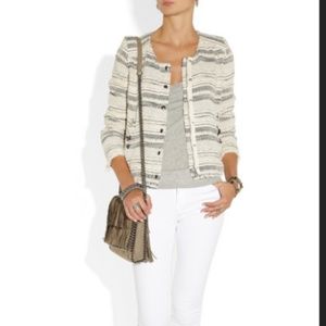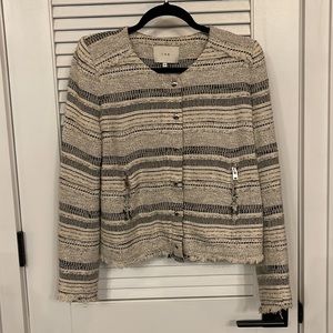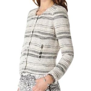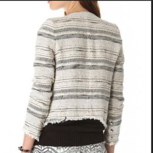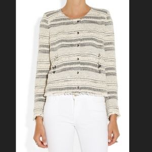 IRO Lizzie White Stripe Tweed Frayed Jacket sz 3