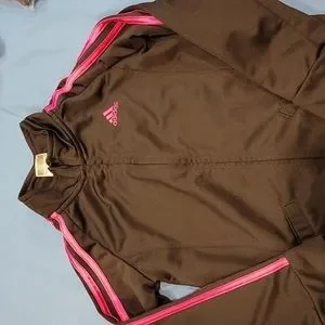 Girls Adidas zipper up jacket with two pockets on the jacket. Pants to match with two pockets on the pants as well