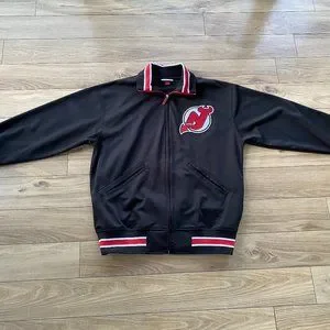 New Jersey Devils Mitchell and Ness Jacket (Large) and Reebok Hat (One Size)