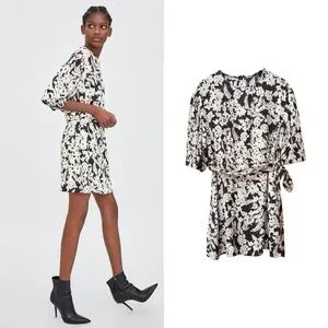 Zara NWT Floral Buttoned & Belted Mini Dress Small