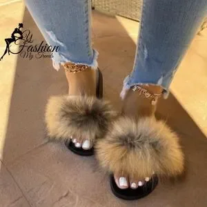 The most comfortable house slippers you will find. Featuring a soft furry upper material and soft footbed, these open toe flat sandals are all the rage!