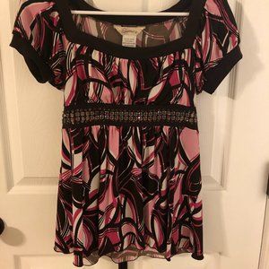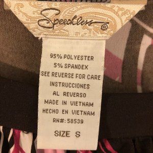 Speechless – Cap Sleeve top with ribbon/tie waist – Size Small – Color: Brown and Pink