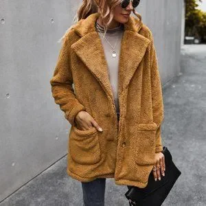 Cuddle Up Button Front Double Pocket Teddy Coat ca
