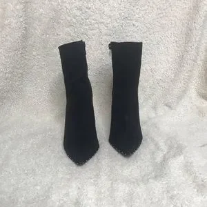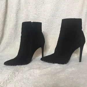 Adorable black suede boots with silver studs around the toe. 4 inch heel, size 8 1/2, pointed toe. Only worn twice! Perfect party heels