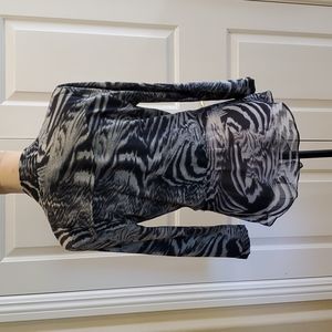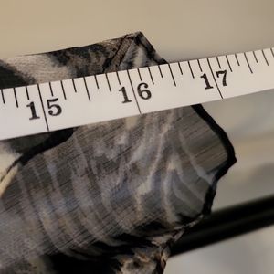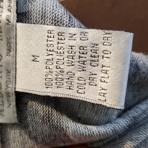 This is a great top, fashionable, comfortable, flattering, adjustable and a delightful, non wrinkle blouse for travelers. great condition, no flaws.