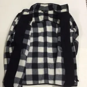 Cute zippered Talbots black and white Fleece jacket with quilted accents. Small petite. Two zippered pockets. Stand up collar. Back length 23”, sleeve length 22.5”. Great fashion look for a cool day.
