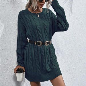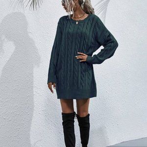 teal oversized chunky knit cable sweater dress
