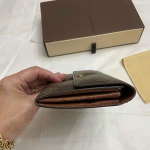 This Louis Vuitton Purse. It is a standard item with an easy to use designed that makes it easy to see what is inside when opened and the coin pocket part open wide.