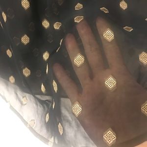 Lucky Brand Black with Gold Detail Sheer Peasant Top