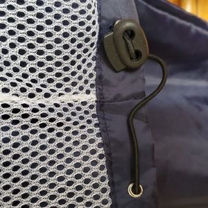 Navy blue light weight 100% polyester. US Olympics Never worn. Armpit to Armpit is 23inches, sleeves from Armpit to cuff 21 inches, from back of collar to bottom hem 30 inches. Mess lining.. No brand is on jacket. Size large. Unisex jacket.