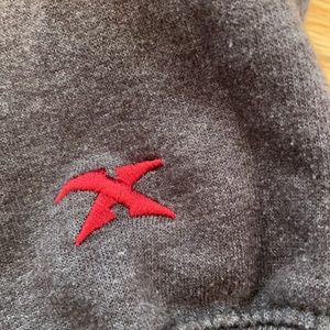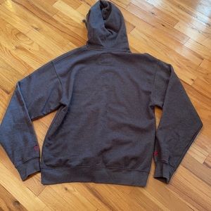 Pockets on front. Drawstring Hood. Great Condition - tiny white spot shown in pics. Just where material is showing thru a tiny bit (?) not noticeable