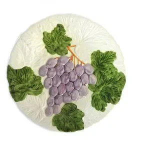 Vintage hand painted ceramic majolica Fruit de Jour cake plate/dessert plate, made in Philippines by Shafford in 1987. Grapes design. 8.25" in diameter. Excellent condition.