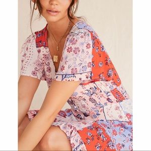 NWT brand new with tags Forever 21 Woven Patchwork Patternblock Floral Print Mini Dress Size Small S in Blush Cream Multi Color - peach pink cream tomato orange red periwinkle blue