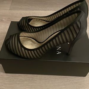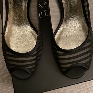 Excellent condition Adrianna Papel flirt open peep toe black chiffon pump