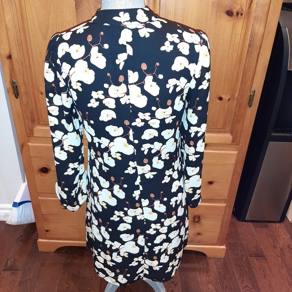 Pretty floral dress with tie at neck. Amazing condition, like new..love this. Pit to pit 18" 21" sleeve ( gathered at wrist) fully lined..polyester.