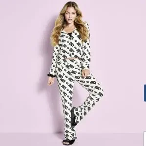 Authentic..BUNDLE...2 items..BOTH items are LARGE...NEW...VELOUR MID RISE Set..Regular Fit.....Bootcut...Extra EXTRA Soft...WHITE & BLACK...Crown Detail...Front Full Zipper...2 front Pocket...Pants have 2 side Pockets...Each retail for $55
