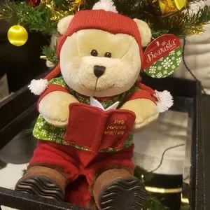 Perfect gift for the Starbucks bearista collector in your life. Love this cute little Christmas bear. He is ready to sing his way into your heart with his lil caroling outfit. Love the details of his knit hat, pattern sweater, pants and fur trimmed lug sole boots.