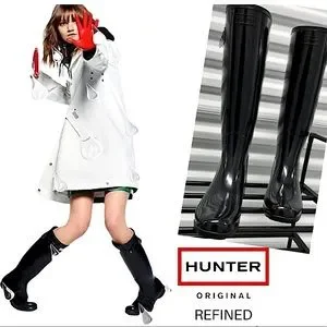 Hunter Refined signature tall rain boot is cast in a more tailored silhouette with a high-shine & glossy finish