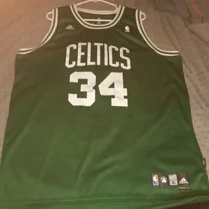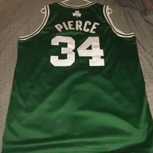 Authentic vintage Celtics jersey.pierce #34,size xl +2 length.some minor flaws as pictured such as frayed stitching in some spots and an extremely tiny burn as shown in photograph