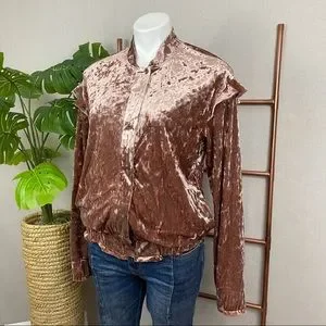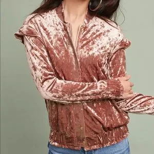Anthropologie Sabina Musayev Pink Blushed Velvet Bomber Jacket (Sz Small)
