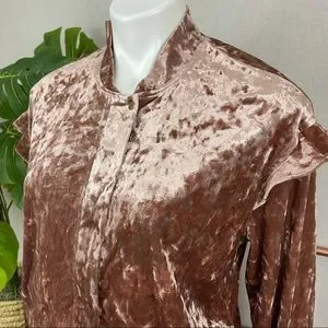 Description | Beautiful crushed velvet/velour light jacket. Long sleeve, full zip, with elastic hem and cuffs. Ruffle shoulder detail. Style with skinnies for a sporty look, or layer this velvet bomber over a silk dress for an evening out.