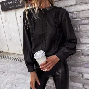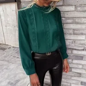 Boho Hunter Green Classic Lace Solid Work Minimalist Top