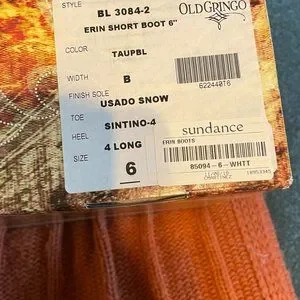 Size 6, Old Gringo Erin Short boot purchased from Sundance Catalog. Incredible design, never been worn, been in the box since purchase. Retails for $430.