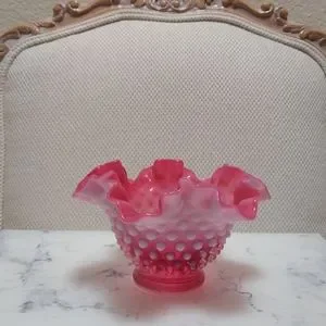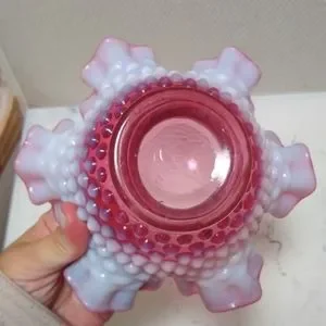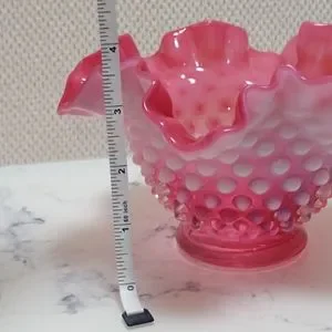 Antique Cranberry Opalescent Hobnail Ruffle Vase
