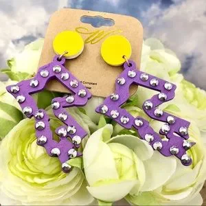 Large Louisiana State Shape Bling Wood Earrings