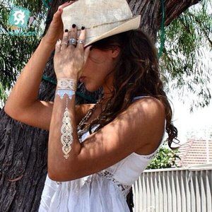 Green, blue, gold, silver beautiful colorful tattoos. Tribal, Indian, elegant style. Third eye, feather, peacock, mandala, cross, numbers, stars, flowers, sleep catcher, pineapple, shells, pharaoh, eye, horus, om, moon, dear, dolphines, swans, butterfly, wings, whitch, raven, pyramids, dream catcher. fairy, om, eye, egyptian,
