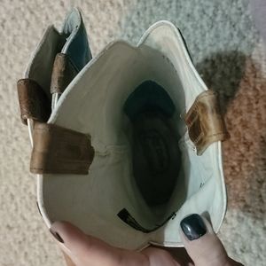 Brown with teal upper part of boot