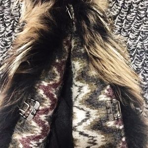 Dolce Cabo knit wool sweater-jacket with raccoon fur.