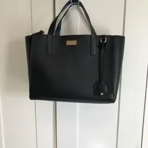Kate Spade Black & Blue Top Handle Leather Tote Bag