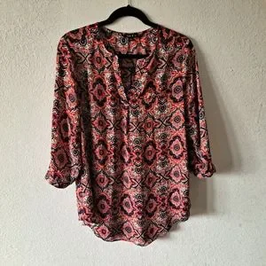 Sami & Jo Orange Geometric Tunic Blouse