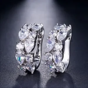 New 925 Silver Round Hearts Diamond Earrings