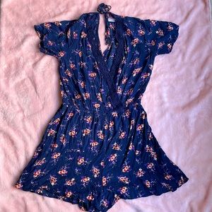 Great condition, relaxed fit, floral romper, low cut in front and back, ties at top in back