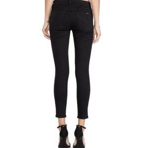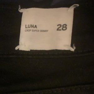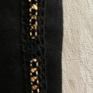 New, black denim Super Skinny Crop jeans with gold chainlink detail down the legs. Button/zipper closure and faux front pockets. Barely noticeable disconnected links as shown in the last photo; otherwise, perfect condition