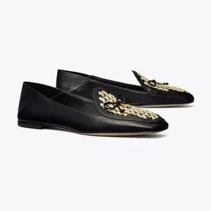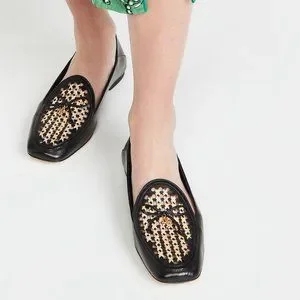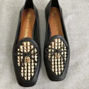 TORY BURCH * NIB $348 * CONVERTIBLE TORY CHARM WOVEN LOAFER Black Oatmeal 11