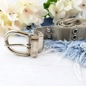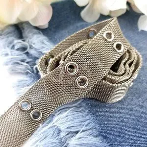 Add some shine to your look with this 90's vintage mesh belt finished with all-around grommet detailing.