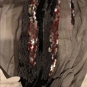 New with tags. DG2 by Diane Gilman Asymmetric Chiffon Blouse with Sequin Tank in charcoal and grey.