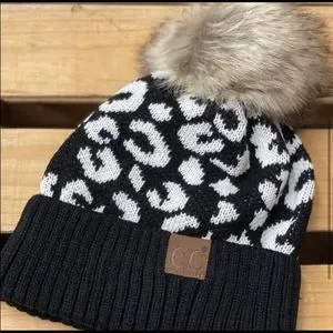 NWT Women’s C.C. Pom Beanie in Black & White Leopard
