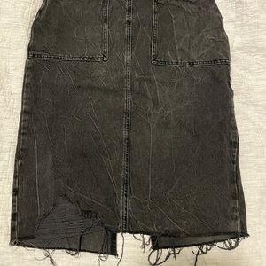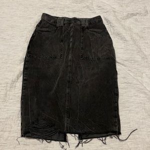 FREE PEOPLE We the Free Womens Black Distressed Below The Knee A-Line Skirt