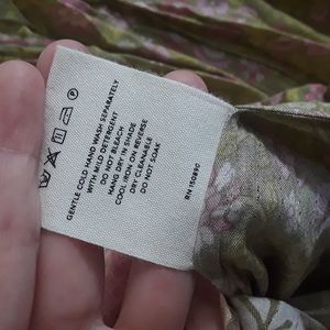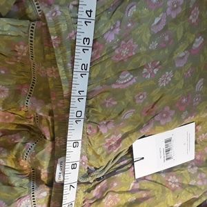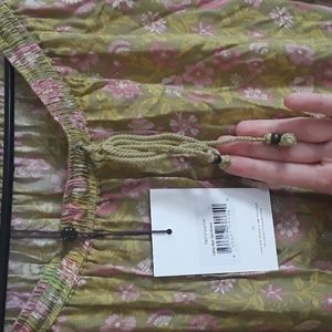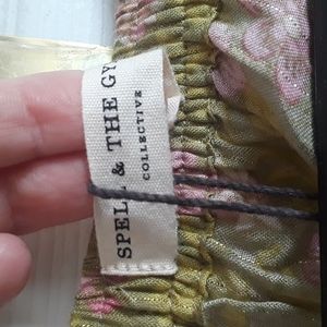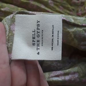 FSOT - (Less $ thru Pal) Gorgeous BNWT Spell & the Gypsy Collective Dahlia Maxi Skirt in Bronze, htf size Large. Sooo flowy and swishy! I just don't love the color on me. Unlined. I think the stock/model pics are most accurate colorwise - a vibrant vintage 70s pea green background, lighter green vines/leaves with flowers in shades of pink, cute ruffle before cream border w/more florals in same colours at bottom hem. Ladder stitching embriodery at tiers. New with tag, I did not find any flaws except some loose extra threads that could be trimmed (see pics). For sale or for trade for wishlist items. Please bundle & comment to diacuss trade options, ty! ✌🦌