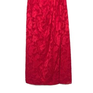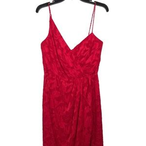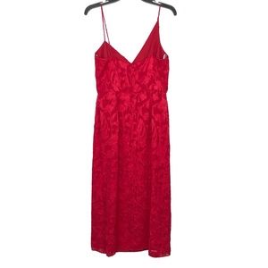 A romantic midi dress enhanced with soft ruching and a jacquard floral design allover.