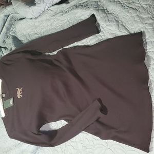 Black, stretchy, long, Wild Fable dress featuring a feline emblem. Approximately hangs just above the knee.