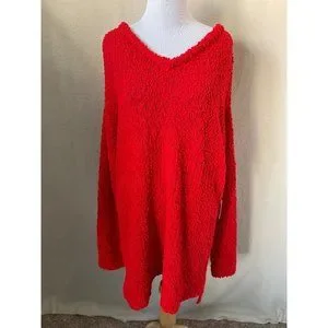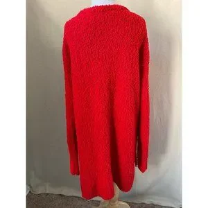Cafe Marrakesh Red Soft Stretch Loose Knit Long Sleeve V-Neck Sweater. Size 2X measures: 24“ (48“D) armpit to armpit, 30“ front length, 33” back length. Very soft, comfortable and beautiful. Brand new with tags, never worn. No discoloration, fading, stains, rips or holes. Clean, smoke-free home.