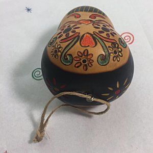 💀Handmade in Mexico GOURD SKULL RATTLE Ornament Day of the Dead Xmas Tree EX