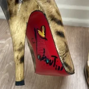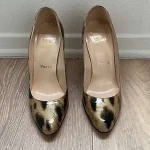 Christian Louboutin leopard patent pump heel 37.5 wsignature Christian Louboutin