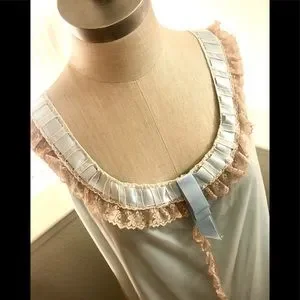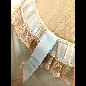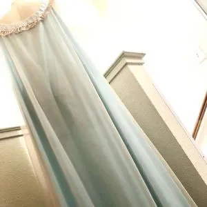 OOAK RARE Vintage 60s LIKE NEW!! Seriously immaculate condition full robe and nightgown set!! Wow 🤩 what a gem 💎 of a set!!! I have no idea how it’s survived this long in perfect condition!!! Very hard to find!! I can get over how soft the material is, including the lace!!! I mean really I had no idea anything was THIS soft from this time period!! Very high end. Color is like a soft blue with tan lace! It features lace in a stunning bow pattern and blue satin ribbon. Someone really treasured this set!! I’m only willing to let this go to someone who will continue to treasure it for the rest of their lives. I’m a person who treasures their garments for 40+ years so far and love to wear vintage clothes that were my mothers and grandmothers. I will only sell to someone who will treasure it the way I do. The gown measures 20.5” across the bust and robe is 23”. The gown is 48.5” shoulder to lace and 51” for the robe.