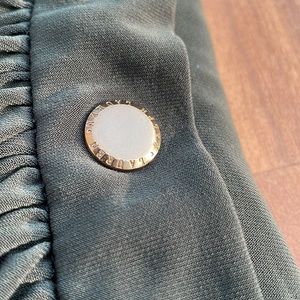 EUC Ralph Lauren jersey knit bodycon dress with side ruching detail and gold snap buttons. V neck design. Gorgeous olive green color.